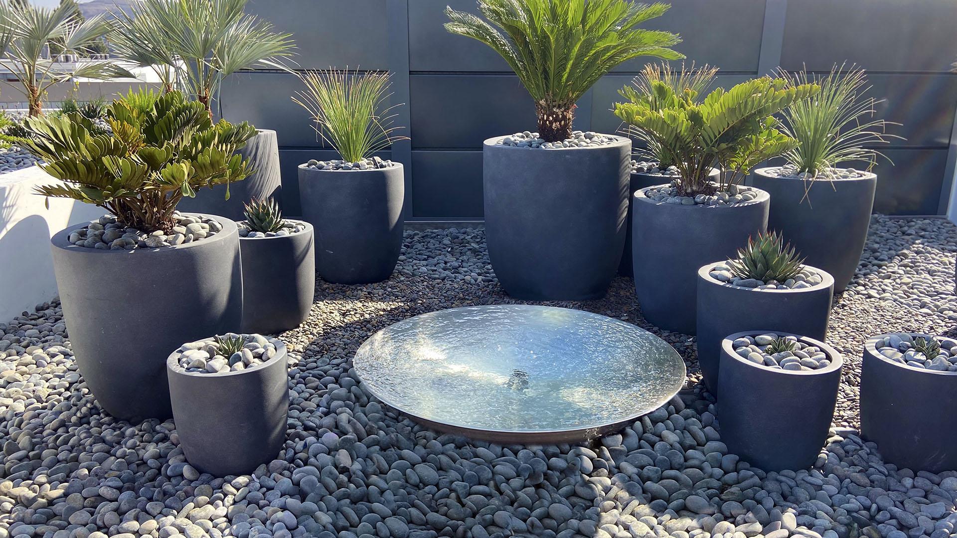 Water walls and water veils are often used to add mesmerizing water movement to exterior walls, while reflecting pools combined with selected water nozzles, spouts, rivulets, and other sculptural elements create modern fountains that fit seamlessly into contemporary urban landscapes.